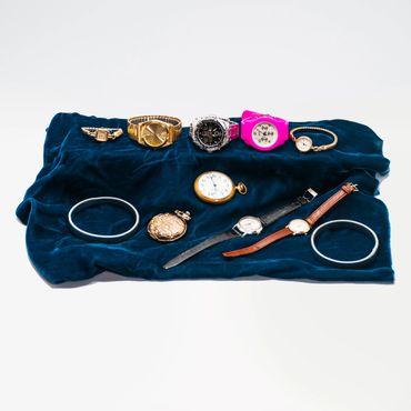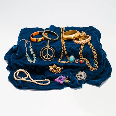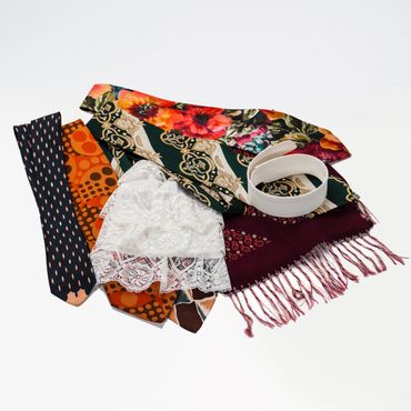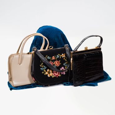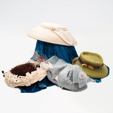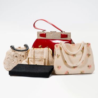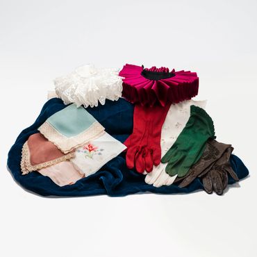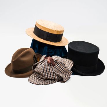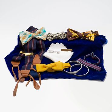 It is almost impossible to list our entire inventory! Available items include bags, ties, hats, umbrellas, badges, glasses, jewelry, wigs, shoes, and much more. Our collection is maintained for any time period.
